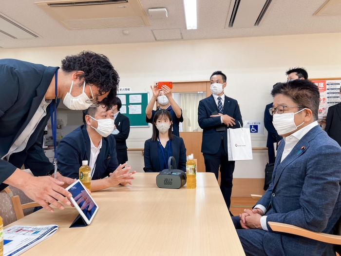 今回、加藤大臣が訪問された社会福祉法人元気村が運営する就労移行支援事業所「夢工房翔裕園」(埼玉県鴻巣市)では、2021年9月から「JOLLYGOOD+」を導入し、精神障害や発達障害を持つ方を対象に就労支援を行なっています。今回の訪問では、加藤大臣にVRを活用した就労支援向けソーシャルスキルトレーニング(*)の現場を実際にご覧いただき、今後の最先端テクノロジーを活用した新しいアプローチによる支援に大きな期待を寄せていただきました。