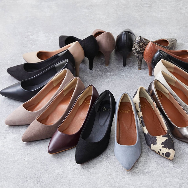 パンプス、ブーツ、サンダルなど長く使えるベーシックデザインから、トレンドシューズまでインターネット販売ならではの品揃えの良さが特徴です。