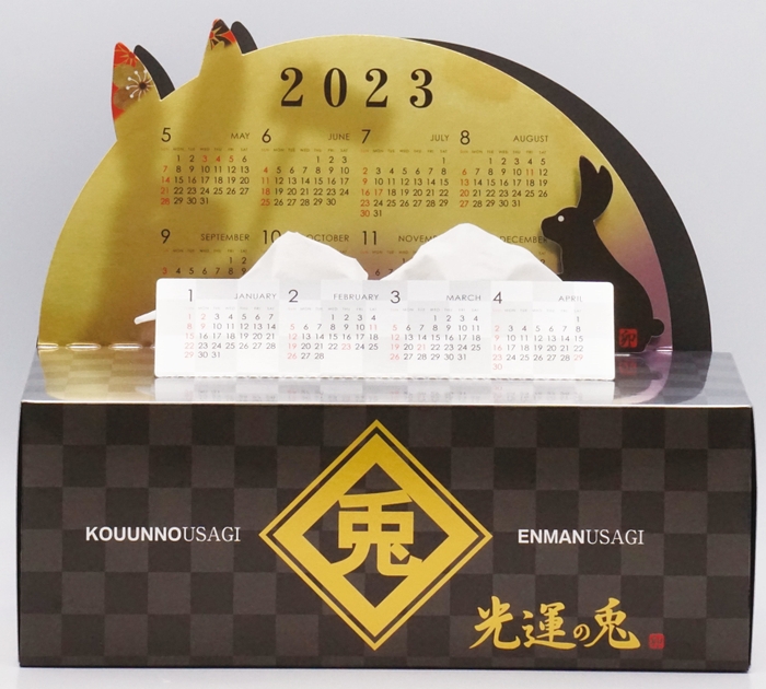 “特別な方へのギフト”“自分へのご褒美”“縁起の良い干支グッズ”など、多様な用途で使える「ハイクオリティ」を追求しました。デザイン性はもちろん、機能性(カレンダー)と実用性(ティッシュケース)を兼ね備えた商品です。