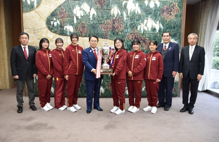 【名城大学女子駅伝部】富士山女子駅伝6連覇を大村秀章・愛知県知事に報告