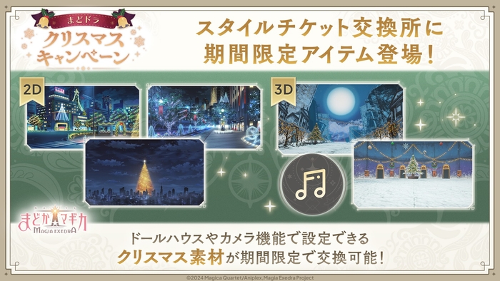 「スタイルチケット交換所」では、今回のクリスマスイベントで登場する魔女結界や2D背景、BGMを交換いただくことができます。こちらは期間限定で2026年1月1日(木)11時59分までの登場となっております。