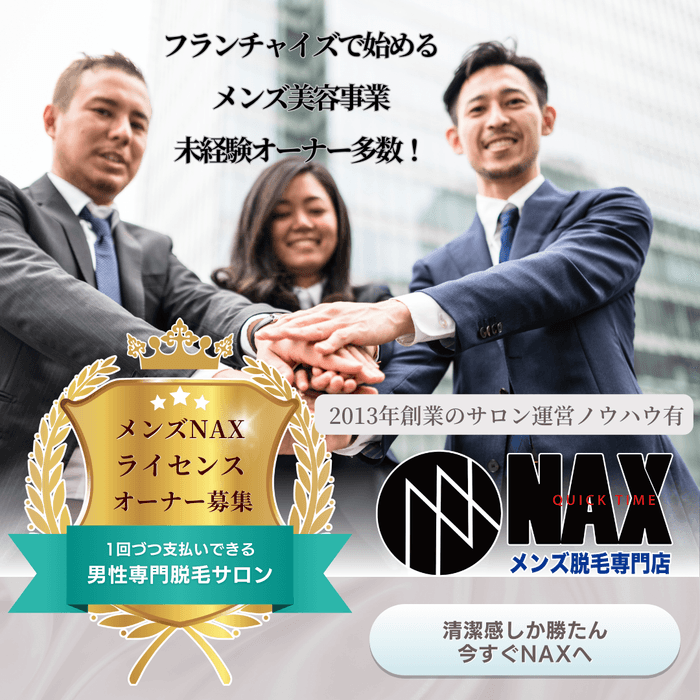 2013年創業のメンズ脱毛NAXは、全国でオーナーを募集しています!