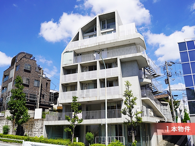小田急線「代々木上原」駅より南東方徒歩約5分に位置する、一棟の賃貸マンションを投資対象としています。外観はコンクリート打ちっぱなしで、内装は白を基調としたスタイリッシュなデザイナーズマンションです。