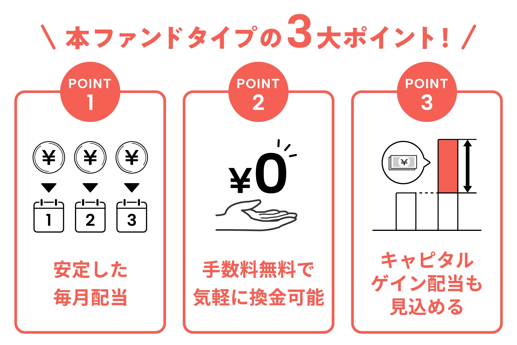 ■安定した毎月配当、手数料無料で気軽に換金可能な新ファンドタイプ