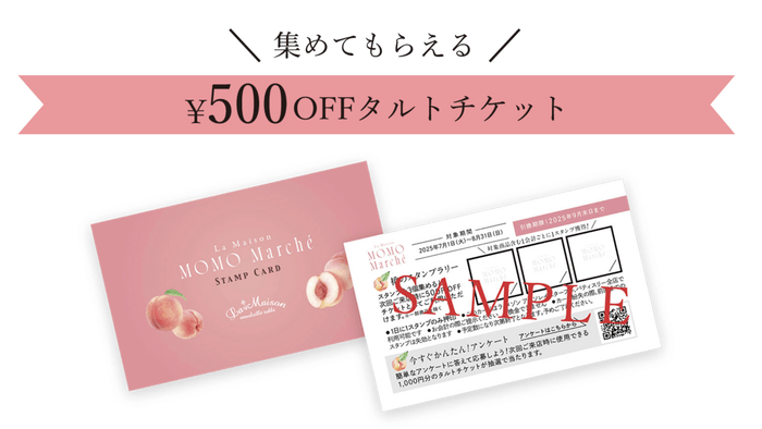桃の対象商品を含む1会計につき1スタンプを押印します。