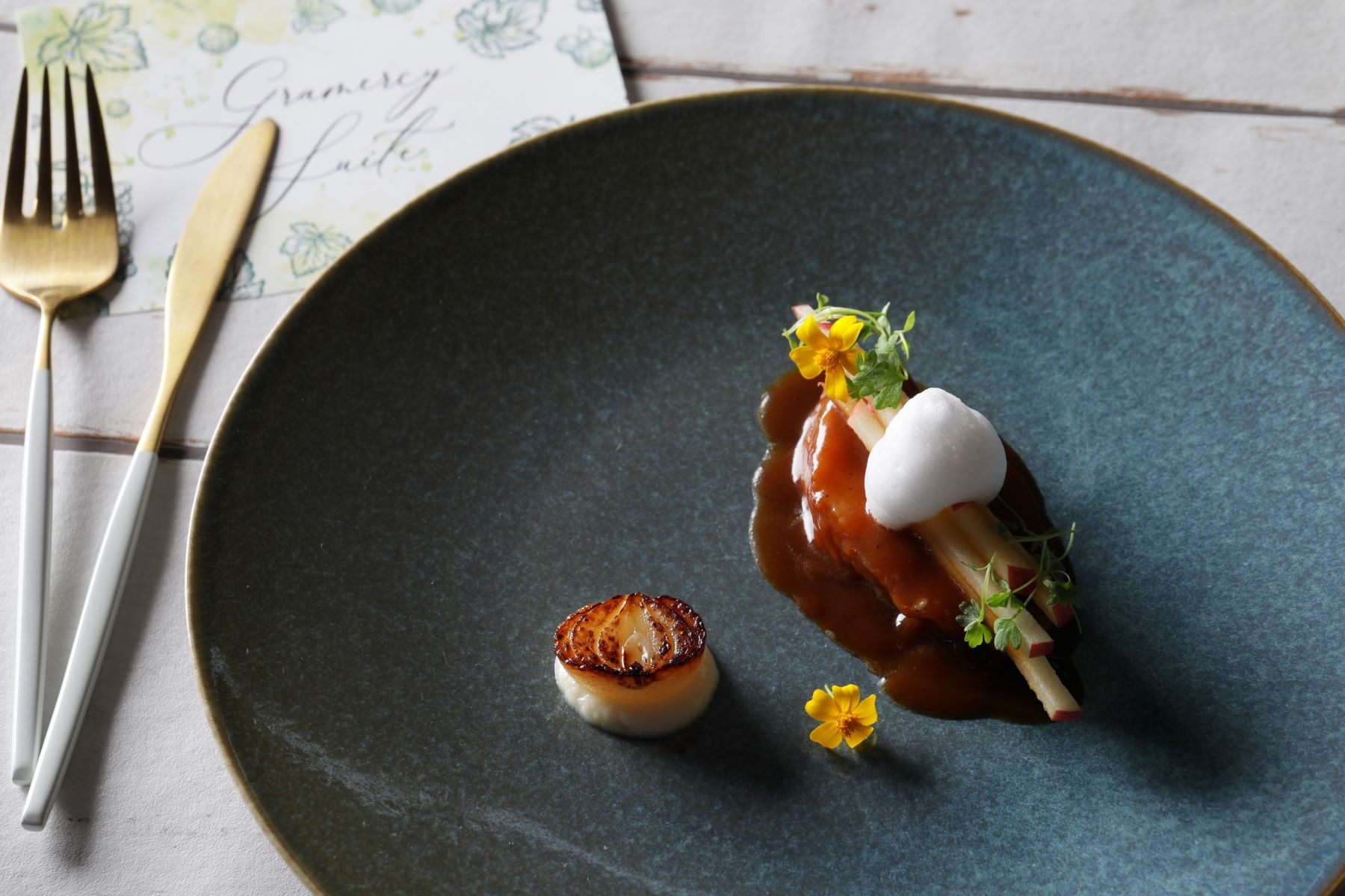 「グラマシースイート」では大地の恵みが豊富な長野県と秋の味覚が満載な山梨県の「甲信地方」をテーマに長野パープルやシャインマスカット、林檎など人気の高い果物を使い食材の旨味を凝縮した料理をお楽しみいただけます。