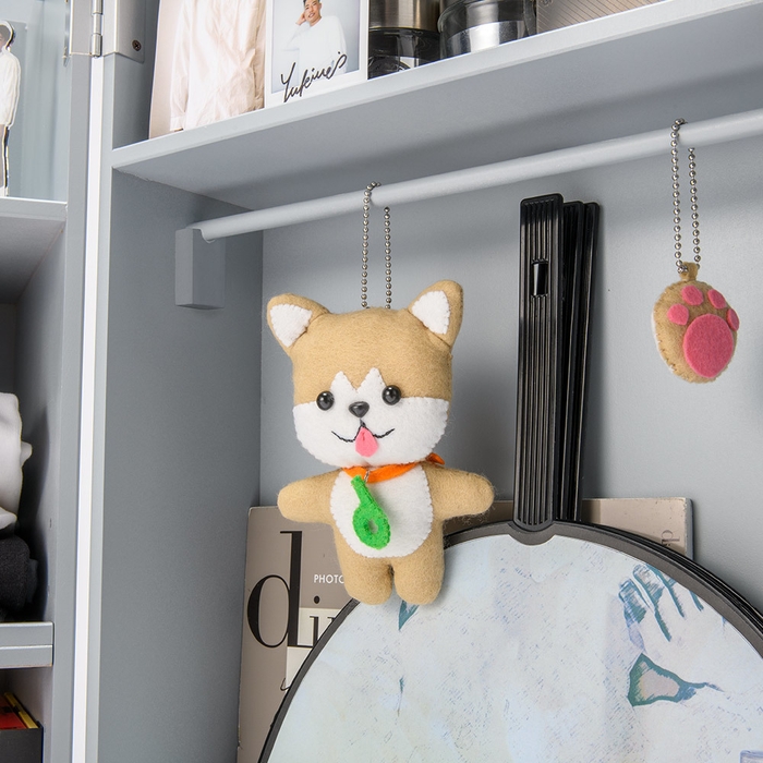アンケートを実施するなど、推し活で収納に困るグッズの収納を解決。上段は誕生パーティを開催できるスペースを確保し、銀テープやアクリルスタンドを飾れる仕様に。棚板には溝を配し写真を挿して飾ることも可能に。ポールは取り外し可能で、キーホルダーやマスコットなどを吊るせます。CD・DVDの収納部分の棚板は高さ調整が可能で、特別仕様のCD・DVDも収納できます。大判のうちわも収納できるようにサイズにこだわりました。