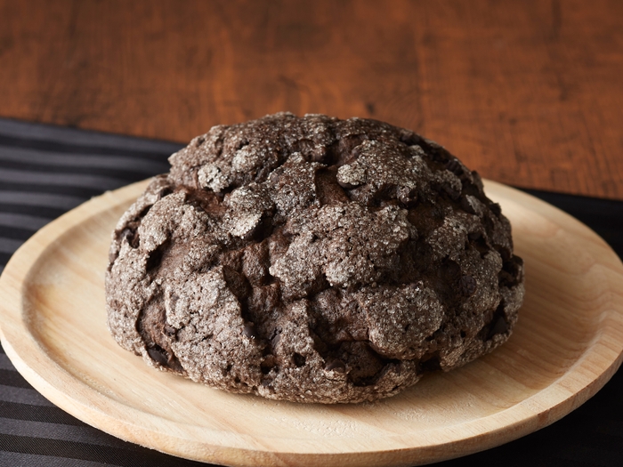 ●商品特長: ブラックフライデーに合わせて、見た目をブラック(黒)に仕上げたメロンパンです。ブラックココアをメロン皮とパン生地に配合し、メロン皮に大粒チョコと小粒チョコの2種類のチョコチップを混ぜ込んで焼き上げた、チョコ尽くしの濃厚でビターな味わいがお楽しみいただけるメロンパンです。