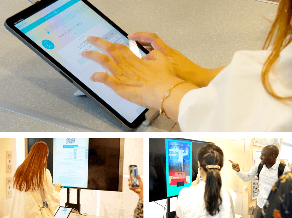 (1)特設ブースに設置されたタブレットから、観光の目的や人数など基本情報を入力します。