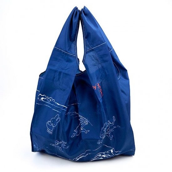 大人っぽいネイビーカラーもご用意しました。こちらのデザイン名は「夜の遊び」ローラースケートを楽しむミッフィーや、走るウサギなどみんな夜を楽しんでいます。エコバッグのサイズは64cm×40cm×20cm。折りたたんで収納すれば12cm×12cmになります。