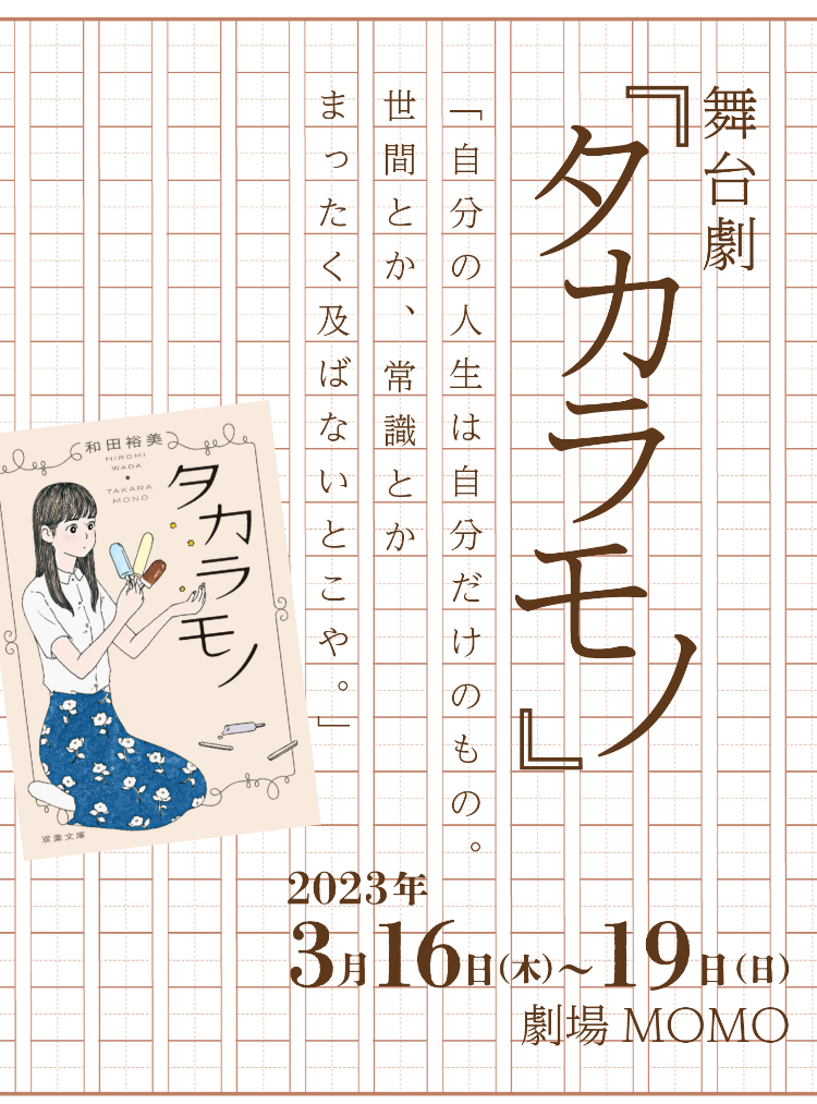 株式会社HIROWA(本社:東京都渋谷区)は、代表取締役の和田裕美が手掛けた小説を元にした舞台劇『タカラモノ』を、2023年3月16日(木)から3月19日(日)まで、東京・中野の「劇場MOMO」で上演いたします。