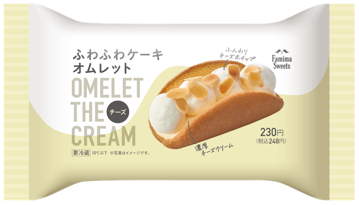 このたびは、「40のいいこと!?」の5つのキーワードの1つである「もっと美味しく」の一環として、こだわりのふわふわオムレット生地にくちどけの良いホイップクリームが織りなす、かつてない新食感スイーツ「ふわふわケーキオムレット チーズ」「ふわふわケーキオムレット チョコ」各230円(税込248円)を2021年11月23日(火)から、全国のファミリーマート約16,600店にて発売いたします。