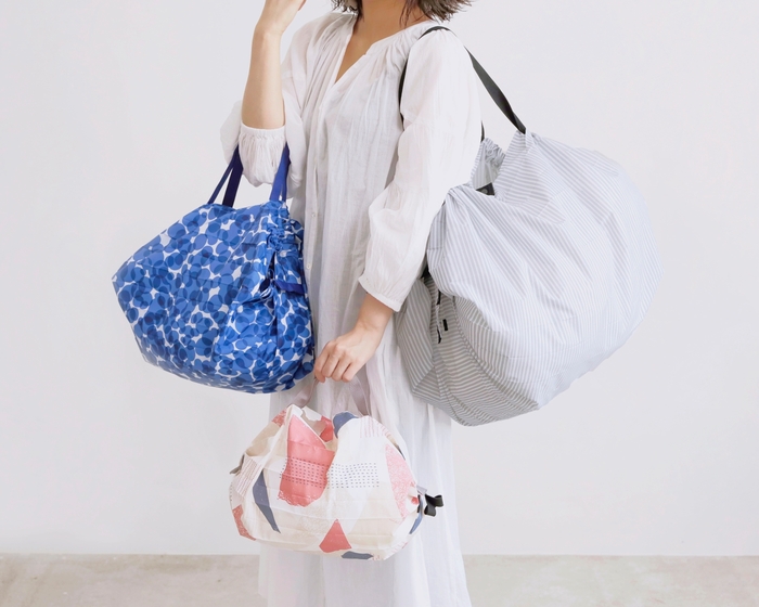 昨年10月には、「Shupatto コンパクトバッグ」3サイズ(S/M/L)をリニューアル。Mサイズは中身のこぼれ落ちを防ぐボタンを袋口に追加しました。Lサイズはサイズを見直し容量が増え、S、Mサイズと同じ生地に変更することでより軽量に、折りたたみ時はよりコンパクトになりました。