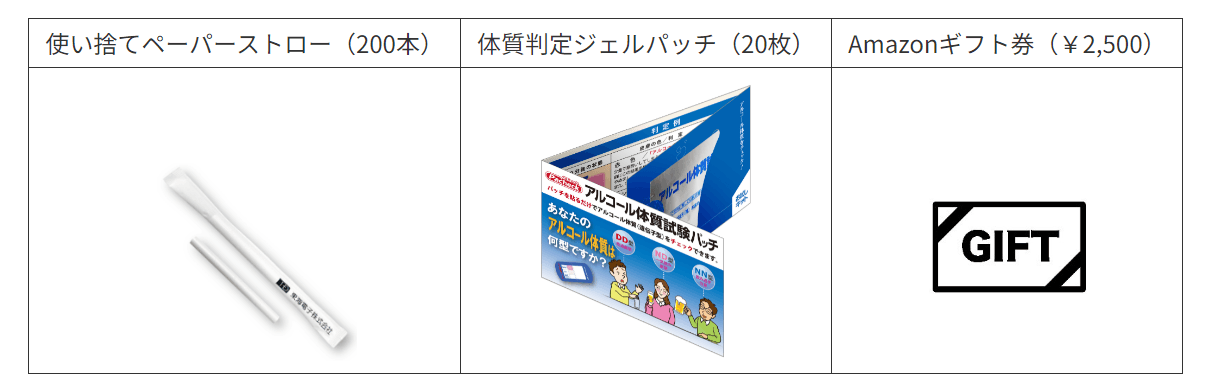 ご応募いただきました方に、以下3商品の内1つをプレゼントさせていただきます。応募フォームよりお好きな商品をお選びください。