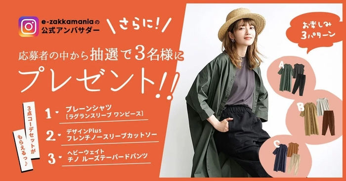 ご応募いただいた方の中から抽選で3名様に、イーザッカマニアストアーズがおすすめする「秋のコーデセット」を3名様にプレゼント!
