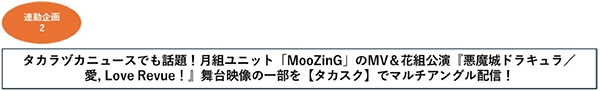 月組ユニット「MooZinG」の撮り下ろし映像と花組公演『悪魔城ドラキュラ/愛,Love Revue!』舞台映像を手元で自由に視点を切り替えられるマルチアングル配信でお届け!