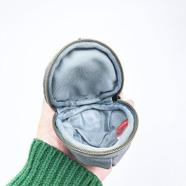 こぶりなポーチだと厚みのある小物の収納が難しいシーンもあるかと思いますが、このキャップの形を活かした立体構造は少し厚みのあるものもスムーズに収納できるのが嬉しいポイントです。