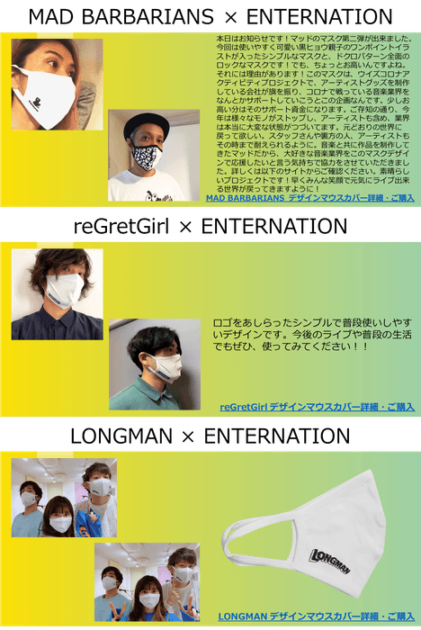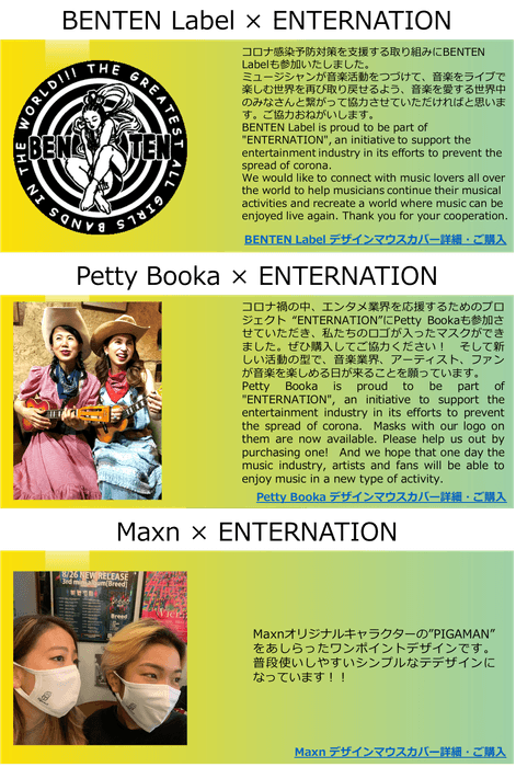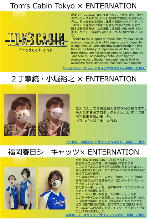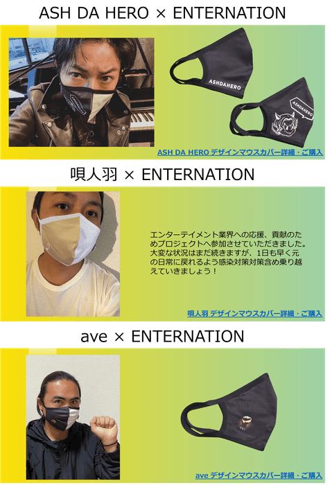 株式会社ハイウェイプラネットとハイファイブ株式会社(代表者:久島信耶/所在地:東京都千代田区)は、コロナ禍の中、エンタメ業界を応援するためのプロジェクト “ENTERNATION” を始動し、ウィズコロナ時代への感染予防啓発アイテムとしてコラボレーターとのコラボレーションマウスカバーを販売いたしました。