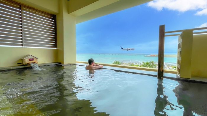 那覇空港から車で約15分、瀬長島の地下1,000mから湧き出るナトリウム塩化物‐強塩泉を使用した温浴施設。大露天風呂からは東シナ海や慶良間諸島に沈む夕陽、那覇空港を離発着する飛行機など、沖縄ならではの絶景を望むことができます。金龍・銀龍の2エリアに分かれ、内湯・立ち湯・壺湯・寝湯など多彩な浴槽と、水風呂やロウリュサウナ、ミストサウナを完備。ここでしか味わえない体験を提供しています。