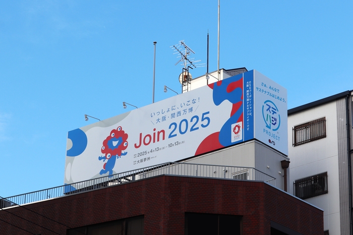 機能水の総合メーカーである株式会社OSGコーポレーション(所在地:大阪市北区、代表取締役社長:山田 啓輔)は、公益社団法人2025日本国際博覧会協会が協賛提案する2025年大阪・関西万博開催に向けた機運醸成を図ることを目的とした広報・プロモーションに賛同し、大阪市天王寺区に、大阪・関西万博公式イメージキャラクター「ミャクミャク」をメインビジュアルとした2025年大阪・関西万博告知の屋上看板広告を提供いたしました。