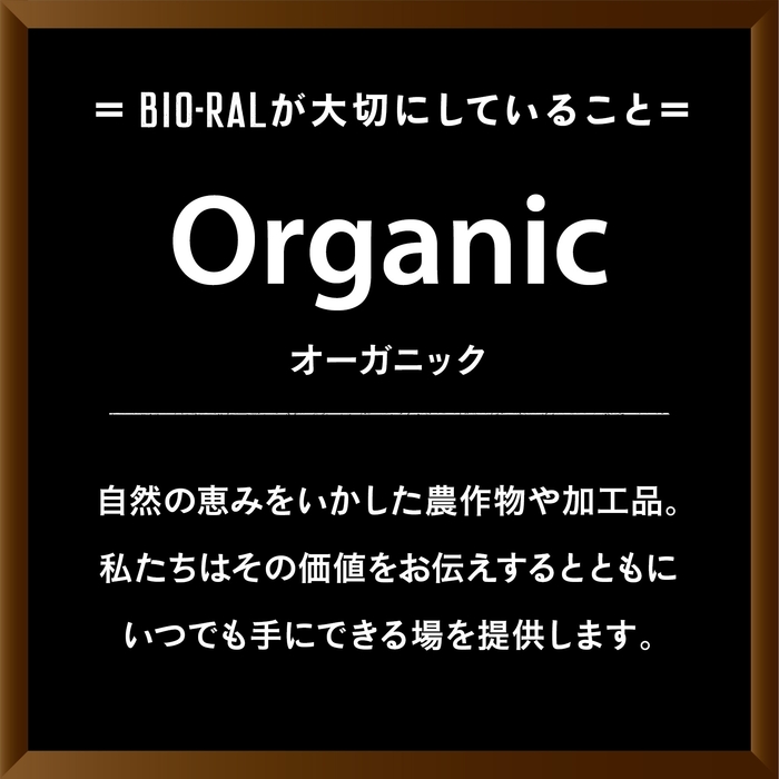 ドイツ語「BIOLOGISCH(有機の)」と英語「NATURAL(自然)」からなる造語。“素敵なナチュラルライフスタイルを通じて、心も体も健康で美しく豊かな毎日を過ごしてもらいたい”と願うスーパーマーケット。「オーガニック」「ローカル」「ヘルシー」「サステナビリティ」をコンセプトに、ナチュラルライフスタイルをご提案し、お客様の心と体の健康と豊かな日々をお手伝いできるよう魅力ある商品を提供しています。