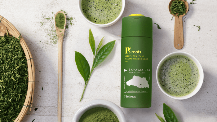 緑茶色の泡と狭山茶の香りひろがる「ピーズルーツ茶葉・ ビタミンC洗顔パウダー」をMakuakeにて12/13より先行販売開始