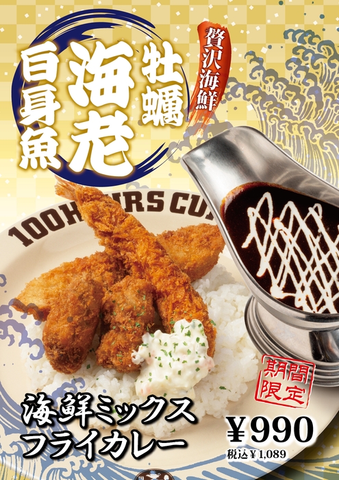 全国約50店舗展開しているカレー専門店「100時間カレー」を運営する株式会社アークス(本社:東京都豊島区、代表取締役:米田周平)は2024年2月1日から期間限定メニューとして「海鮮ミックスフライカレー」の販売を開始することをお知らせします。