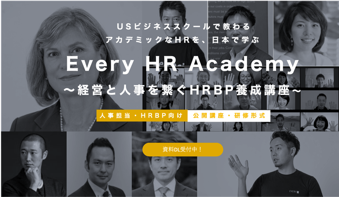 情報過多の状況において、企業の成功事例や真新しい取り組みがバズワードのようにトレンドとして取り上げられる中で、Everyは代表が米国ビジネススクール「Haas School of Business, UC Berkeley」で習得した知識とともに、事業会社での役員経験、最前線で活動するメンバーが保有する即効性のある実践ノウハウと、国内外の学術・民間パートナーから得た情報を分かりやすく体系的に習得いただける「Every HR Academy ~経営と人事を繋ぐHRBP養成講座~」を立ち上げ、実践を意識した良質な学びの場をお届けいたします。