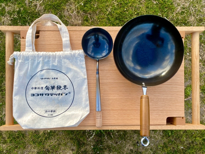 ・鉄製のお玉とオリジナル収納袋もセット。焚き火×中華鍋×お玉とのカンカンという音=ロマン!