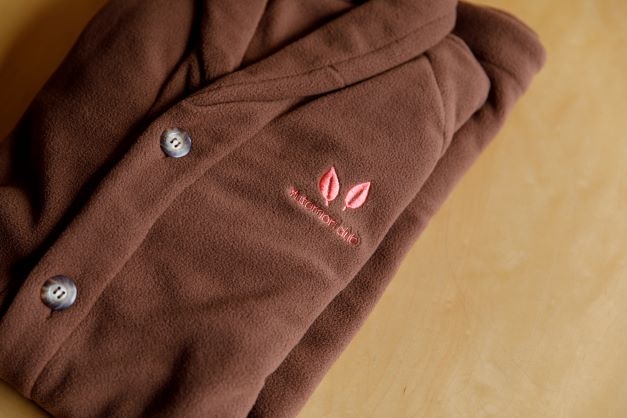 肌寒い時はさっとこのガウンを羽織れば、リラックス気分がくずれることなく寒さをしのげます。前はボタン仕上げ、胸元にはオリジナルの刺繍入りです。男女兼用のフリーサイズ。