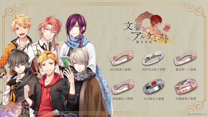 「文豪とアルケミスト」のゲーム内にて実装された装備品、各文豪の指環を再現。