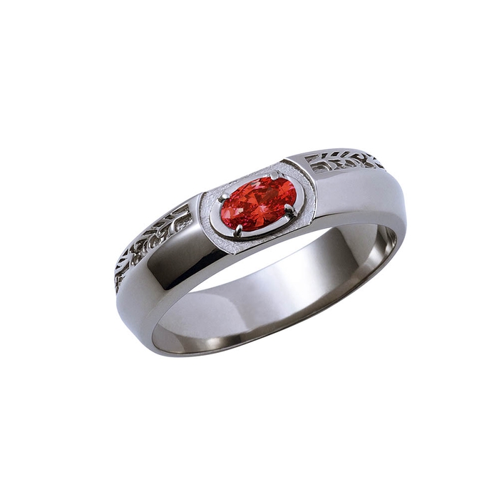高村の指環(弓)は洗練されたシルバーカラーを施したカレッジリング風の型に、イメージカラーストーンを配しました。上品なデザインです。