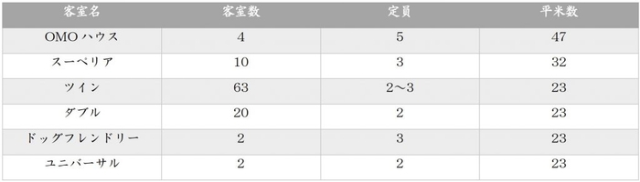 客室、OMOベース(フロント、OMOカフェ、ラウンジ、ライブラリー、ショップ)