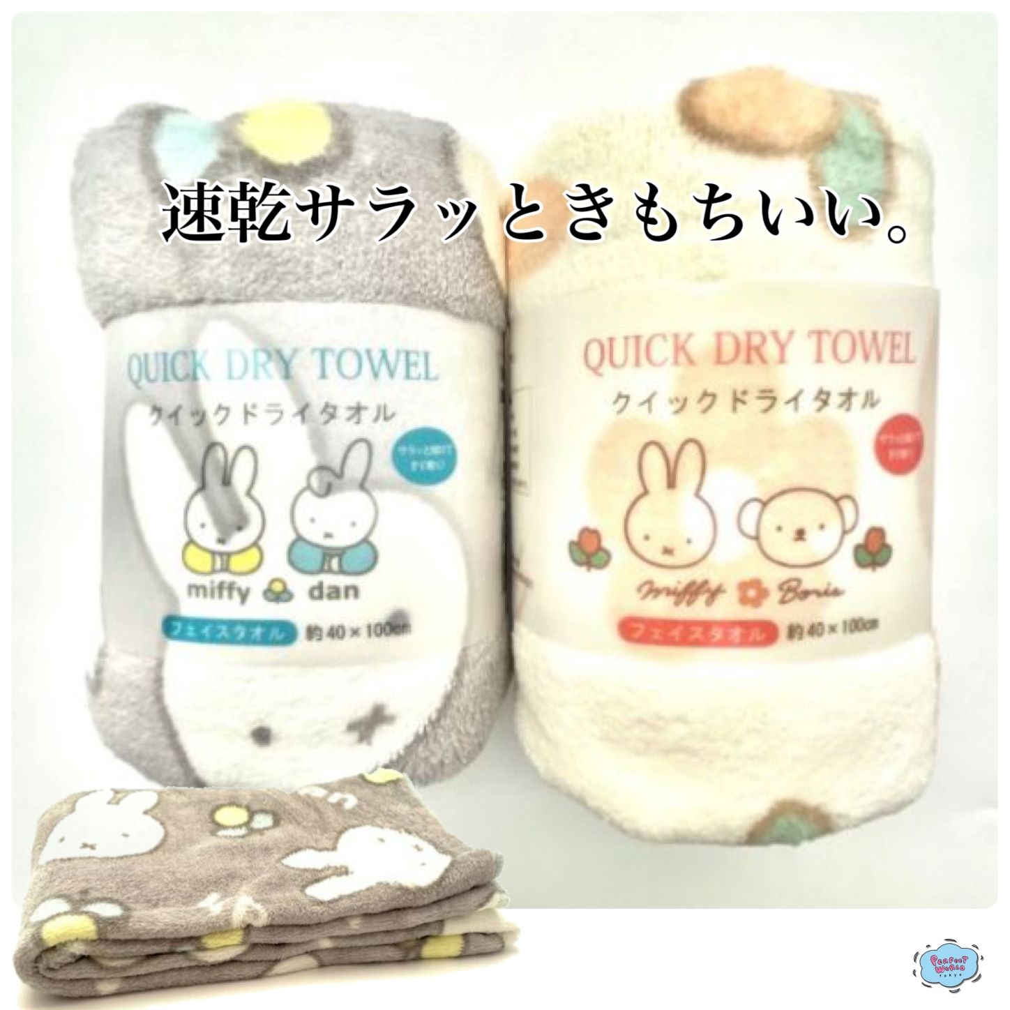 速乾サラッとがきもちいい。ミッフィーの速乾フェイスタオルとバスタオル♪
