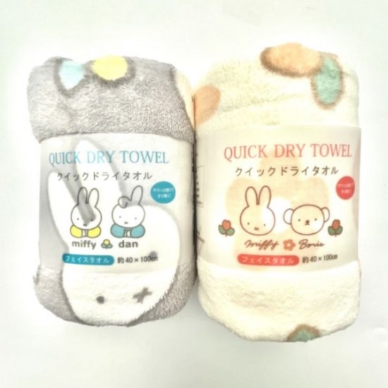 ミッフィーの速乾フェイスタオルは、グレーとホワイトをご用意しています。