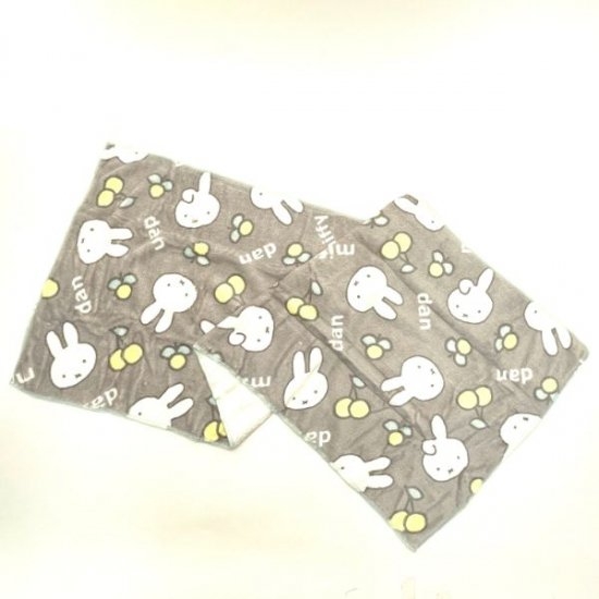 こちらは速乾フェイスタオルです。サイズは縦100cm×横40cm、フェイスタオルなので縦長に作られています。肩にかけて使用することも可能なのでアウトドアやプールでも活躍しそうですよね♪ポリエステルが80%、ナイロンは20%です。こちらのミッフィー&ダーン柄は優しいグレーカラーとチェリーが可愛い♡