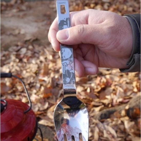 シェラカップで調理した後は、こちらのヌードルスプーンを使って美味しくいただきましょう。「野外活動サークル」デザインが可愛いアイテムです。