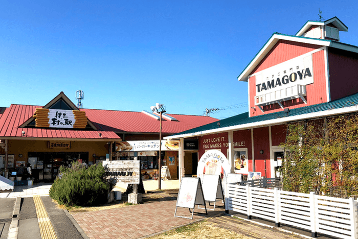 伊豆・村の駅は「伊豆のおいしさをあなたに届けたい」をコンセプトに掲げ、静岡県伊豆エリアの玄関口三島市の国道136号線沿いに店舗を構えています。地元の生産者さん中心にお野菜が並ぶ農産物直売所をはじめ、美味しい海鮮丼が楽しめるマグロ道場や伊豆の椎茸が主役のTHIS伊豆SHIITAKEバーガーキッチン、たまご専門店TAMAGOYAなど、地域の素材を楽しんで味わえるお店がズラリと並びます。さらに特産物を使用した調味料やお菓子などのお土産もご用意。食べて買ってお店で過ごす時間を通して地域の魅力を感じていただく「食のテーマパーク」です。