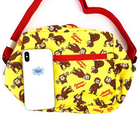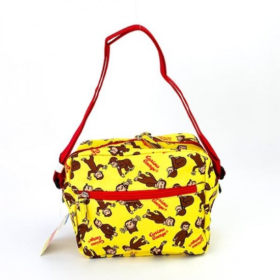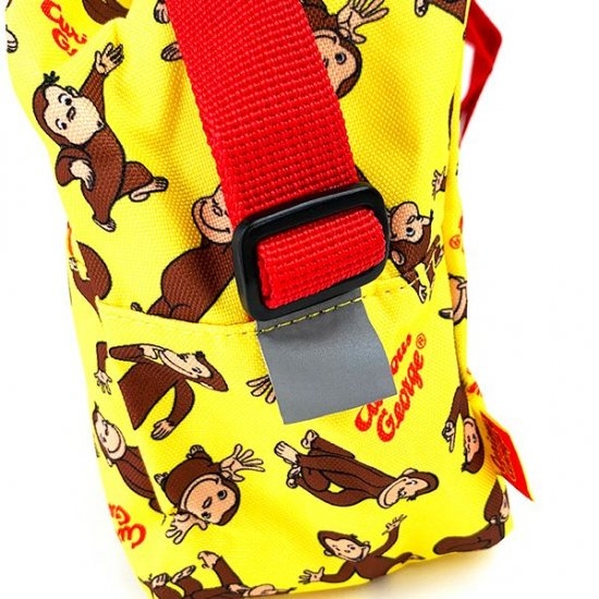 こちらはショルダーバッグです。ジョージの総柄がプリントされており、元気が出るテイスト♪お子様が身に着けている様子を見ればママさんもニッコリのかわいいバッグです。サイズは18cm×22cm×11cmで、おでかけや旅行にピッタリの大きさで持ち運びやすい◎車のライトを反射して光るリフレクター付きで、ママさんも安心です。