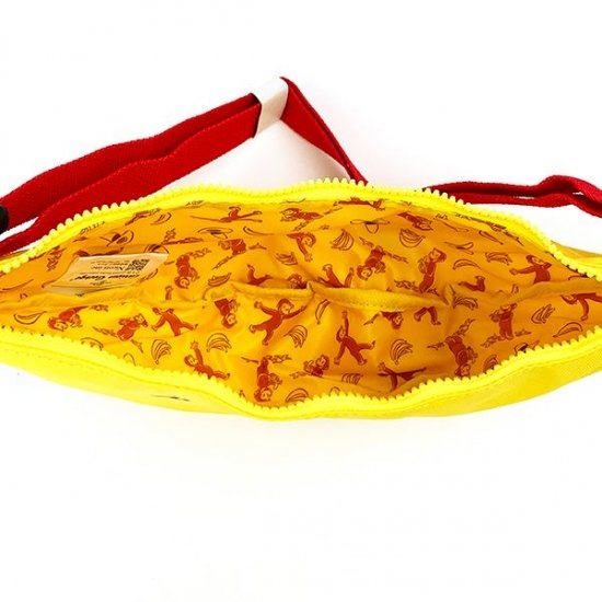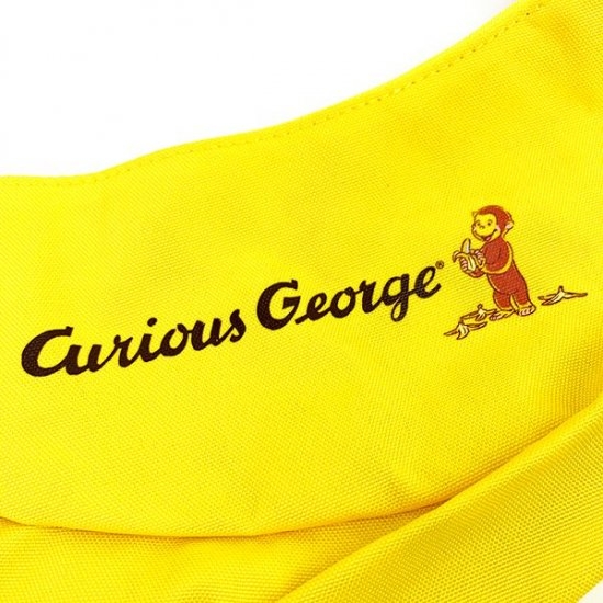 こちらのボディバッグもすごく素敵なんです!ジョージが好きなバナナをイメージして形を作ったバナナ型♪バナナを身に着けた様子がかわいいバッグです。バッグの内側の中生地にはジョージがいっぱい!バナナ感を出すために、さきほどのバッグとは違いワンポイントでシンプルに仕上げています。
