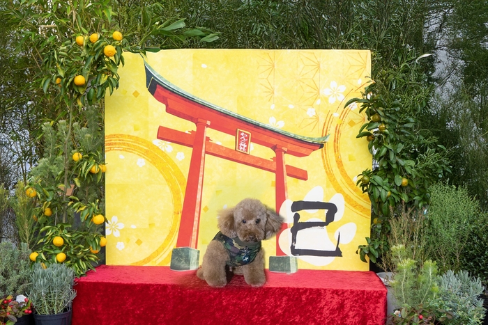 干支フォトスポットに加えて、わんこ神社パネルと「巳」の文字を組み合わせたペット向けフォトスポットもご用意しております。愛犬やペットたちとの新春記念撮影にもご利用ください。