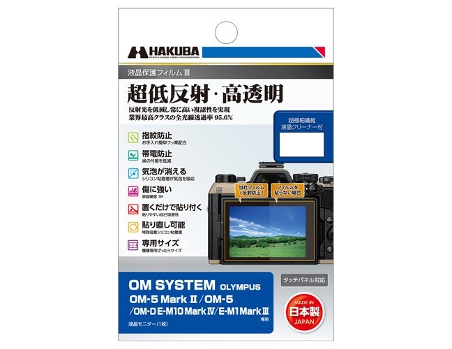 ハクバ写真産業株式会社(本社:東京都墨田区)は、業界最高クラスの超低反射・高透明さを誇るデジタルカメラ用液晶保護フィルムにOM SYSTEM「OM-5 Mark II」専用1製品を追加いたします。