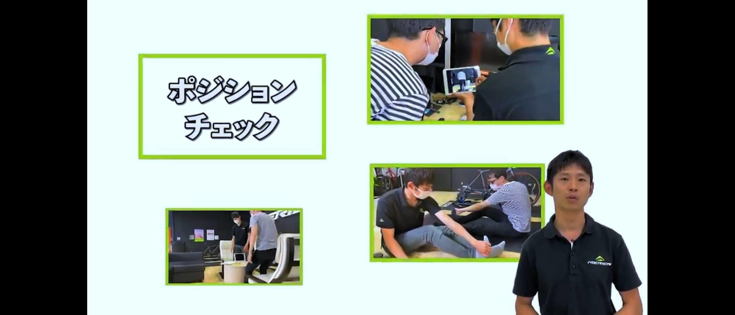 施設内にある固定ローラー台に受講者のロードバイクをセットして乗車姿勢や、ペダリングをチェック。動画で撮影することで受講者も客観的に確認することが出来るため、理解度が向上します。