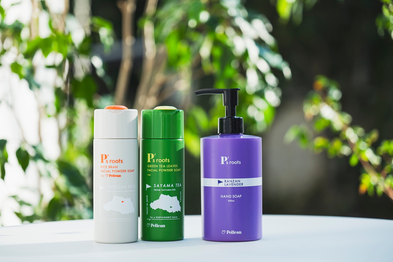 『P's roots(ピーズルーツ)』の「P」は、ペリカンの「P」。ペリカン石鹸の原点=ルーツ(roots)である、埼玉県の選りすぐりの天然素材を使い、手間ひまかけて開発したブランドです。