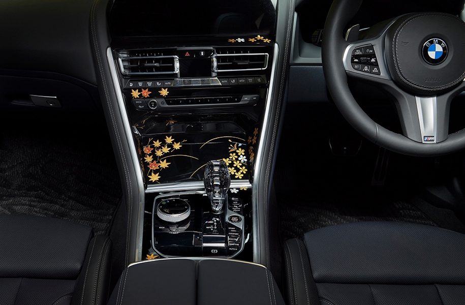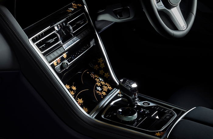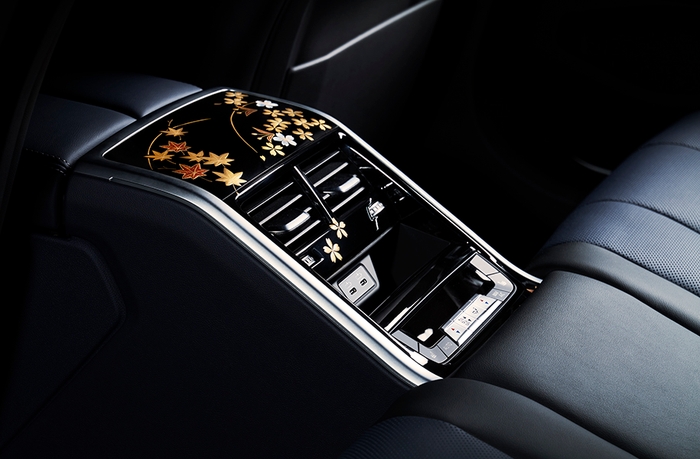 センターコンソール・リアコンソールを桜と紅葉をモチーフに蒔絵・螺鈿で装飾。四季の移り変わりの趣を感じさせる古典柄が、現代のプロダクトと融合します。平蒔絵と高蒔絵を組み合わせることで生まれる遠近感、美しく輝く螺鈿は繊細でありながら、力強く、見るものを魅了します。シンプルな空間に際立つ有機的な自然素材の美しさは、車に乗るよろこびを一層深めてくれます。