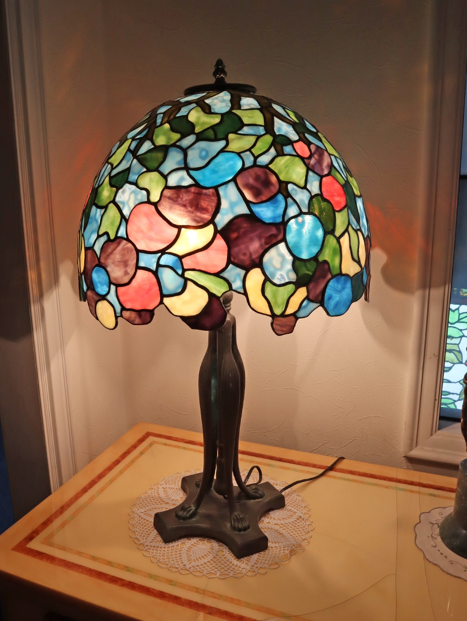 ステンドグラスランプや衝立など受講生や熟練講師の手がけた多岐にわたる作品が集結