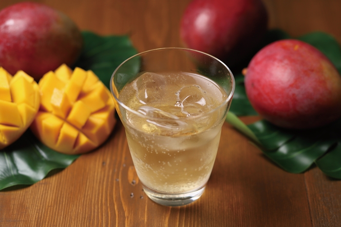 7~8月が旬のマンゴー果実1/8個分の果汁11%とパッションフルーツのリキュールを使用し、熟したマンゴーをそのまま搾ったような味わいと香りに、爽やかな風味を加えました。