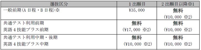 「一般前期」のA日程とB日程を同時に出願する場合の検定料は最大\35,000