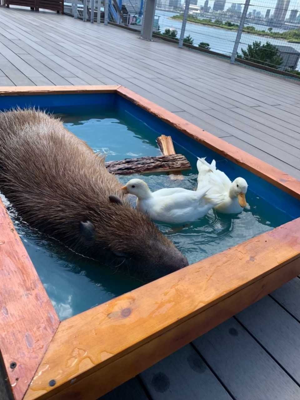 関東初!カピバラとコールダックの混合展示 ※1