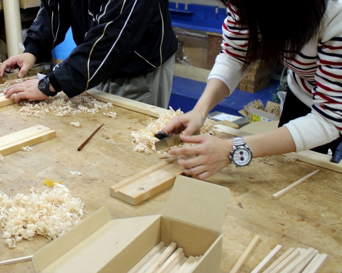 お好きな樹種を選んで、鉋を使ってお箸を制作します。鉋を使うのが初めての方、小さなお子さまでもご参加いただけます。